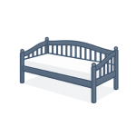 - Scrolled, shaped headboard