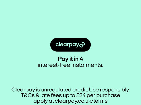 Clearpay is a payment service that lends customers a fixed amount of credit to make purchases instantly and then pay for them in 4 automatic instalments, made every 2 weeks, without any interest (late fees apply).The service is provided by Clearpay Finance Ltd. Clearpay Plans are not regulated by the Financial Conduct Authority.