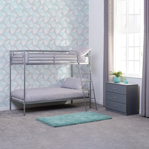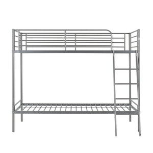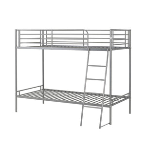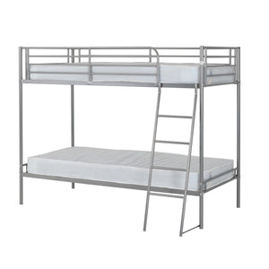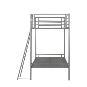 The Brandon Bunk Bed is brought to offer style and space to a room. A modern design with a right hand slanting ladder, to making climbing up into bed easy and safe. Made of metal for durabilty and offers a simplistic modern design. Mattresses are not included.