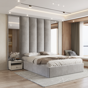The Candy Bed Frame is a modern and stylish addition to any bedroom. It features an extra-tall headboard with widely spaced vertical lines, creating a bold and visually appealing design that stands out. The footboard is simple and clean, allowing the headboard to remain the focal point of the bed.