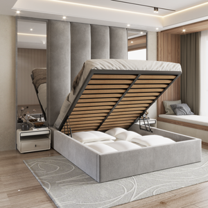 In addition to its striking design, this bed frame includes a hidden ottoman storage compartment beneath, providing ample space to store bedding, seasonal clothes, or any other items you want to keep organised and out of sight.
