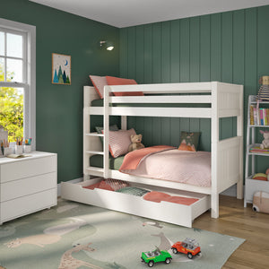 Enhance your space with the Classic Originals White Bunk Bed featuring a convenient trundle drawer - a stylish and functional solution for shared bedrooms. Crafted with safety in mind, this bunk bed boasts a classic design that blends seamlessly with diverse room décors.