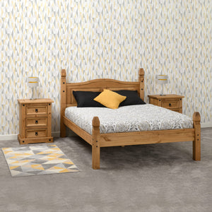 Styled with a Mexican influence this Corona 4'6" Low End Bed has a warm, welcoming appearance, enhanced by the beautiful wood grain of the solid pine. Touches of Black Metal strongly contrast the natural tones of the pine, enforcing the rustic look.