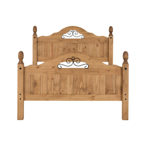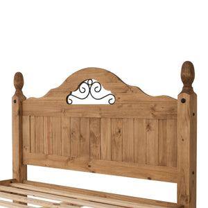 Corona Scroll 4FT6 Bed High Foot End - Distressed Waxed Pine