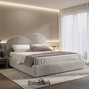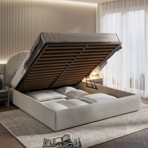 The Dazzle Bed Frame catches the eye with its distinctive headboard, showcasing a unique curved line pattern that brings a modern touch to the bedroom. The plain footboard maintains a clean, balanced look. Designed with both style and practicality in mind, the frame includes an easy-lift storage compartment—ideal for keeping bedding, clothing, or other items neatly tucked away. Offering a sturdy and supportive base, this bed frame combines visual appeal with everyday functionality, making it a smart and stylish choice for any home.