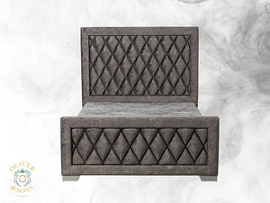 The Diamond Bed Frame is available in various colours in plush fabric.