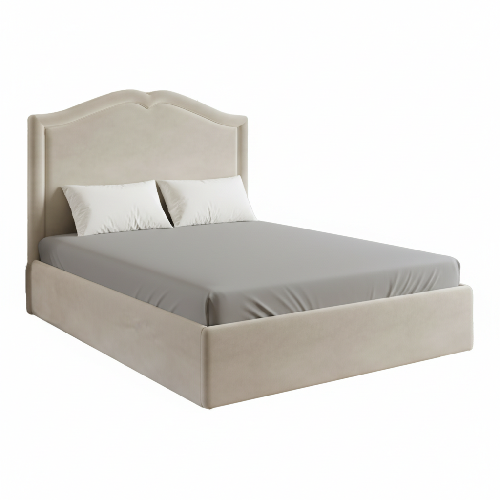 Subtly Curved Headboard: A gracefully arched headboard with delicate wings offers a soft, inviting focal point for your sleeping area.