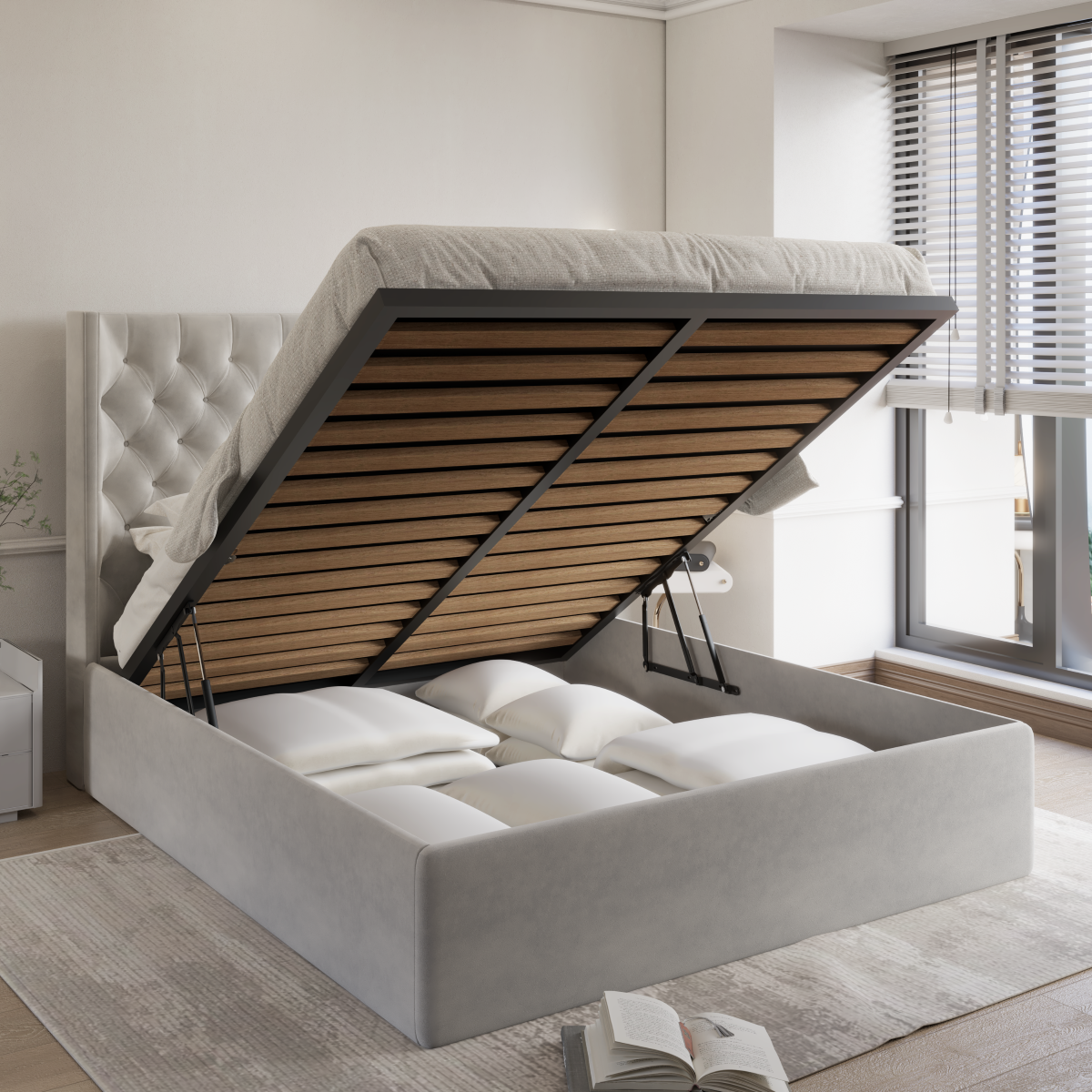 Space-Saving Ottoman Base: A gas-lift ottoman mechanism allows for effortless access to generous under-bed storage, perfect for keeping your room tidy.