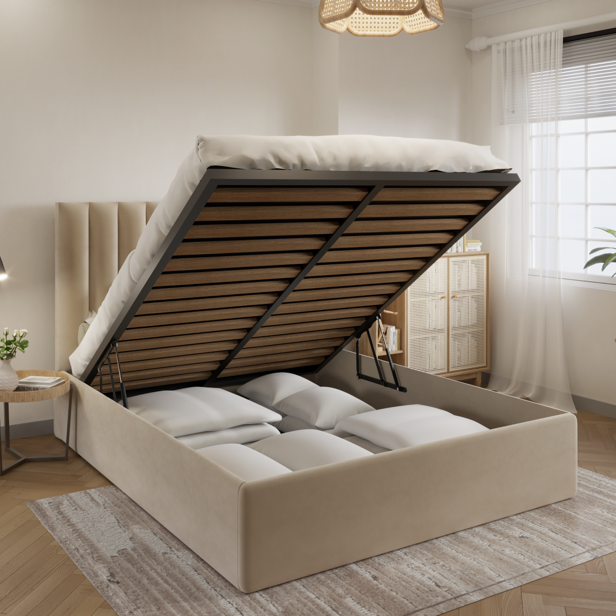 Hidden Storage: Enjoy convenient, ample storage beneath the mattress, effortlessly accessed with an ottoman gas-lift mechanism to keep your belongings neatly out of sight.