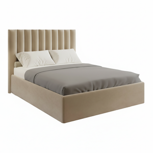 Striking Headboard: A tall, clean-lined headboard features prominent vertical channeling, creating a sophisticated and eye-catching backdrop for your sleep space.