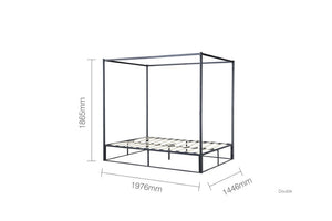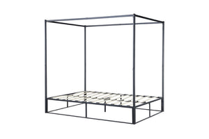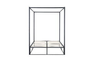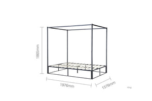 The sleek design strips back the traditional bulky four-poster to a simple contemporary steel metal frame structure.