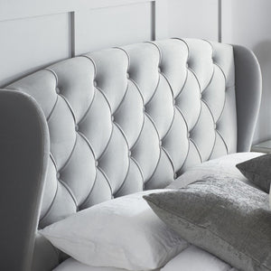 Make a grand style statement with this elegant and contemporary bed frame. Featuring a wingback headboard with tufted detailing and 4 drawers.