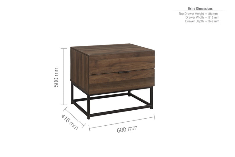 HOS2BSWAL Houston 2 Drawer Bedside Walnut: