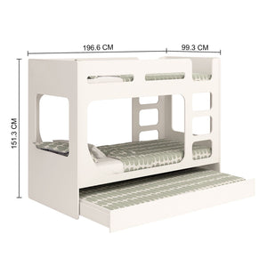 PODBB01 Kidsaw Bunk Bed Pod with Pull Out Bed in White:
