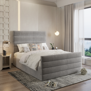 The Kiwi Bed Frame combines refined style with practical utility. Upholstered in a distinctive horizontal line pattern, it introduces a sleek, sophisticated look to the bedroom. Hidden beneath the frame is a roomy storage compartment—ideal for storing extra linens, clothing, or other essentials. This discreet storage solution helps maintain a tidy, clutter-free space, making the Kiwi an excellent fit for any modern home.