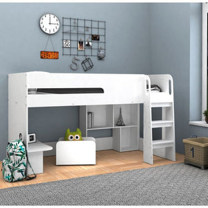 Kidsaw - Kudl, Mid Sleeper with Desk, Bookcase, Toybox in White