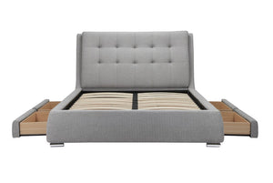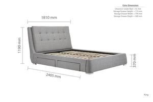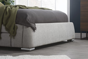 Covered in textured grey fabric, this low-based bed is real luxury - as the name, Mayfair, suggests - the deep-buttoned headboard is a real statement, and the practicality of the drawers is an added bonus.
