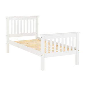 The Monaco bed frame of solid construction and has a sturdy wooden slatted base that will provide your mattress with the support it needs. The slats offer stability to the frame and mattress. The head boards are angle cut in traditional shaker style, beautifully finished in an attrdraft White finish. Please Note These are FRAMES ONLY Mattresses Are NOT Included!