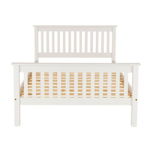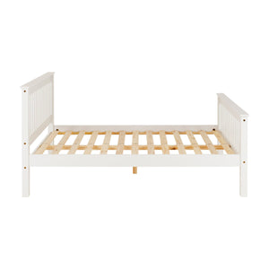 Sleep in classic style with this bed frame, which features a timeless design emphasized by its beautiful and durable solid wood build. The bed frame’s open-slatted headboard and footboard are full of rustic charm and the glow of the natural wood is allowed to shine. Wooden slats are included to ensure a good night’s sleep. Assembly is required and a mattress is not included.