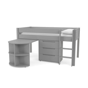 New Classic Midsleeper With Pull Out Desk And 3 Drawer Chest Grey