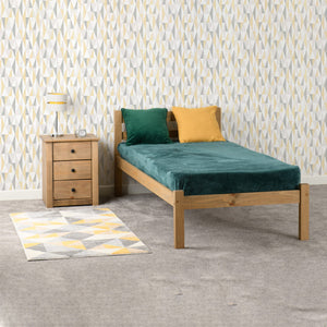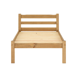A traditional wooden 3ft single bed frame crafted from sturdy pine with a natural wax finish. This solid frame has been beautifully crafted from solid pine and finished with a neutral natural wax finish. Featuring a simple slatted headend, the Panama Bed is sure to be a lasting addition to your bedroom. Co-ordinating items are available to purchase within the Panama range.