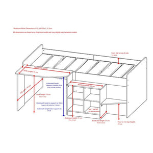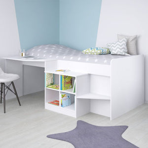 The Pilot cabin bed is like a Batman utility belt, it has everything all in one place. A desk, bookcase and sleeping area all designed into a great space saving idea. It's low to the ground and ideal for any age group. Finished in a durable wipe clean material with thicker edges for sustained durability.