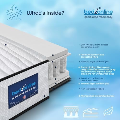 BEDZ-POCK-SPRNG-50 Pocket Sprung Mattress - Cooling & Hypoallergenic: