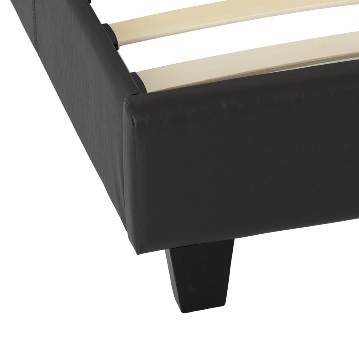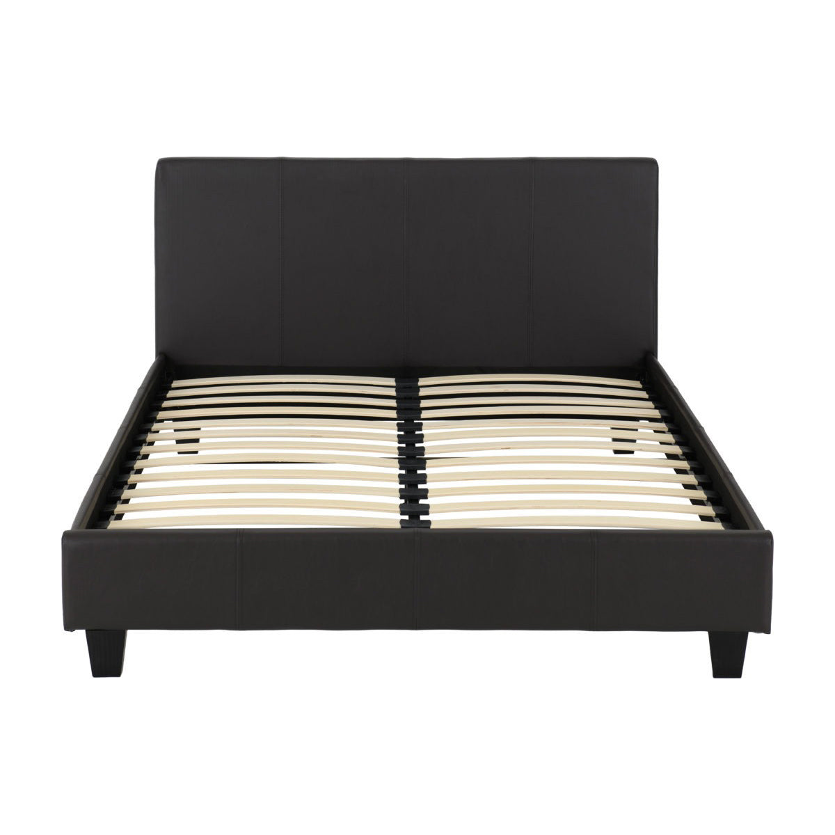 The Prado Faux Leather bed frame in Dark Chocolate Brown. It will look excellent in any room. With excellent sturdy build quality and its low centre of gravity, this bed is strong yet stylish elegant to fit the room around it. The Bed has a slatted rib cage bed with a centre metal rail.