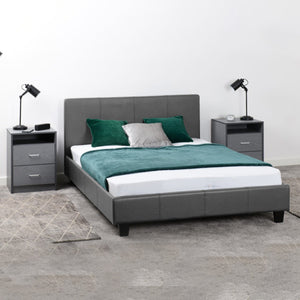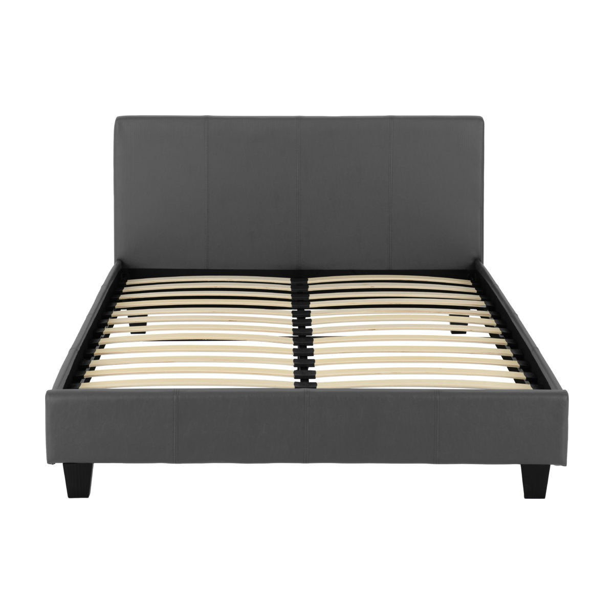 The 5′ Double Prado bed has a padded frame upholstered in grey fabric, with a neat, stitched headboard and light wooden legs, showcasing its restrained modern style. A beautiful bed for any decor, and perfect for sleepyheads to rest.