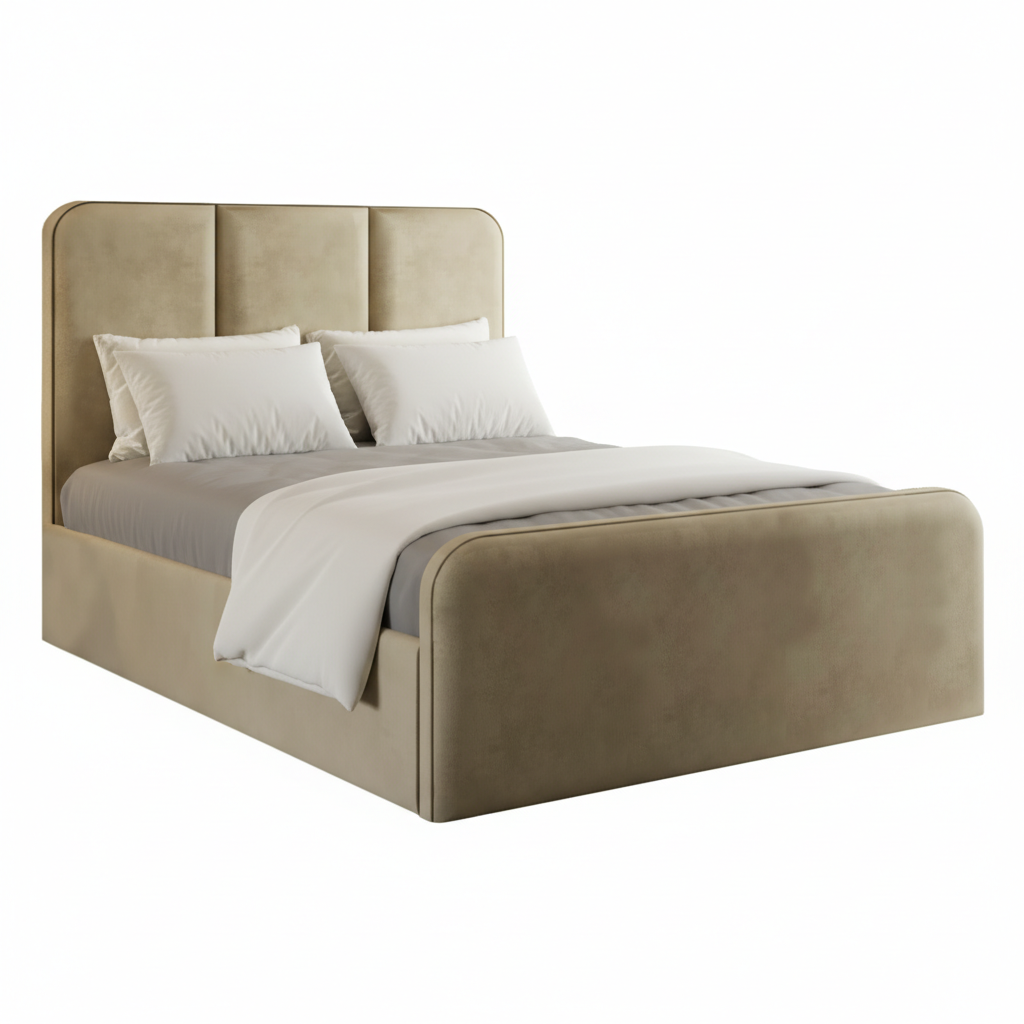 This bed frame features a stylish headboard with a vertical line pattern and gracefully curved edges. The footboard complements the design with its smooth, rounded edges. Beneath the frame is a spacious storage area, ideal for stowing extra blankets, pillows, or seasonal clothing. This makes it an excellent choice for bedrooms with limited space. Combining both beauty and practicality, this bed frame offers a comfortable sleeping surface alongside convenient storage.