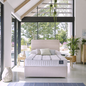 It’s expertly crafted in the UK with luxurious natural fillings and traditional woolen tufts for superior comfort and longer lasting shape.