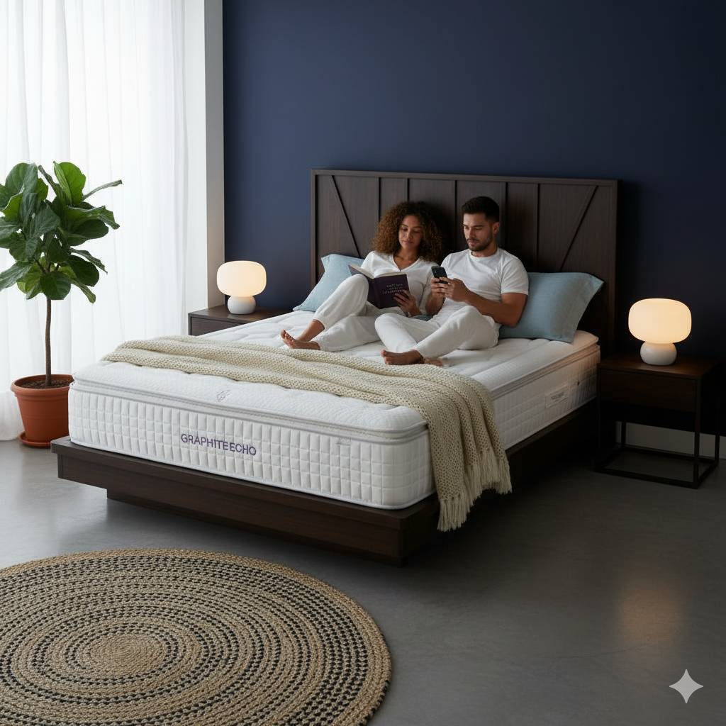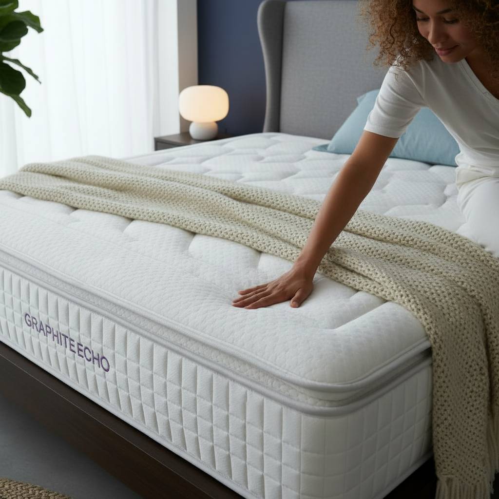 This is a prominent thick, dark grey foam layer. This is the specialized "Graphite Echo" foam, which provides precise body contouring and superior pressure relief, while the Graphite infusion actively removes heat for an exceptionally cool sleep.