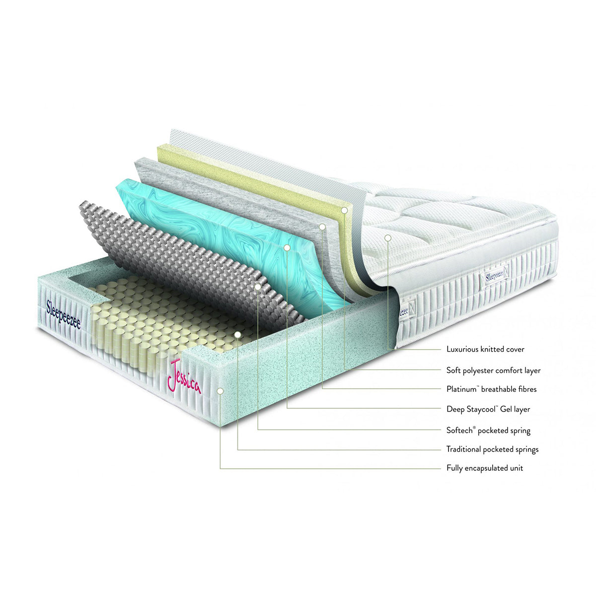 Introducing the Jessica, a Which?-approved encapsulated mattress with edge-to-edge support, complete with Staycool™ Gel that helps to regulate body temperature. And with the perfect blend of technologies, you’re guaranteed to sleep soundly all night long.