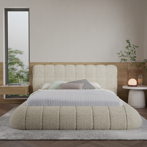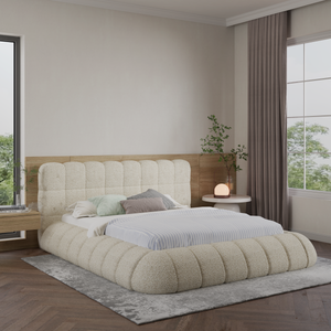 Create your nest of relaxation within your bedroom with a bedframe that speaks of supreme comfort matched with modern elegance: the Solstice Bedframe. Made to feature a wavy, cushioned pattern, this bed frame is done in plush, padded headboard and base upholstery with softly textured fabric to make you want to unwind for the night.