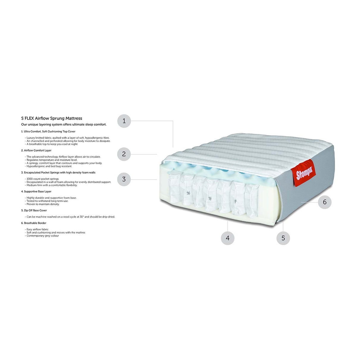 Stompa S Flex Airflow Pocket Sprung Extra Long Single Mattress 90x200x15.5cm