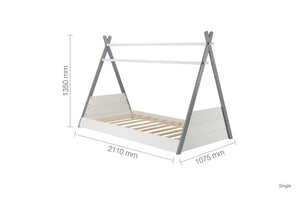 TEPB3WTGV3 Teepee Single Bed White & Grey:
