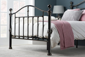 A traditional piece, the Victoria steel bed features an elegant finish that accentuates the detail in the framework.