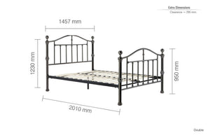 Constructed from steel, this frame is finished using an electroplating paint process and is available in black nickel. Please note that the Victoria frame has black side rails.
