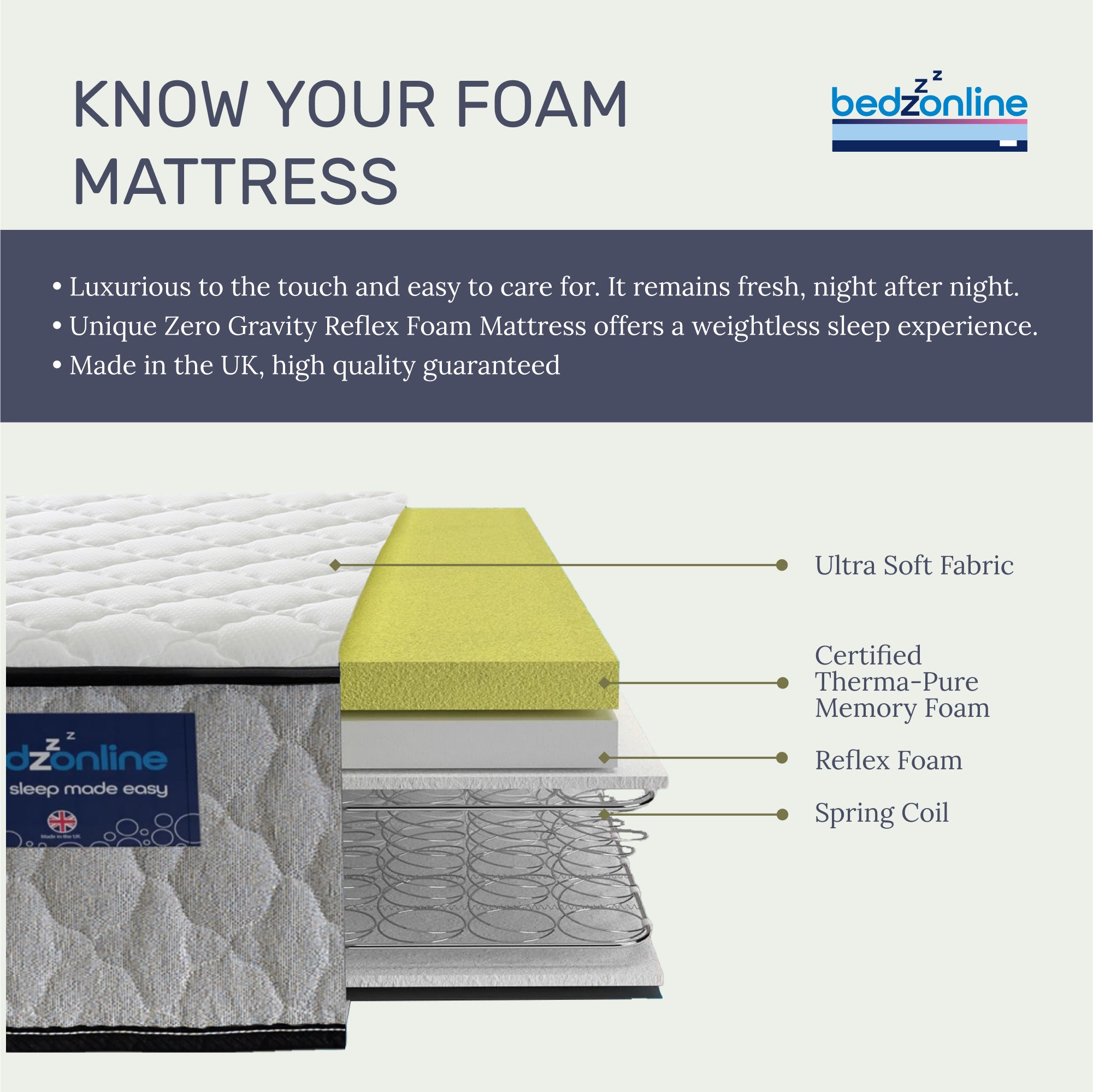 This Diamond Memory Foam Spring Mattress Features A Premium Spring System With Double The Amount Of Comfort Fillings & Memory Foam Of Other Budget Mattresses So Creating An Exceptional Class Leading Mattress.